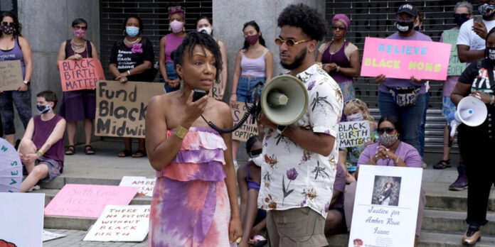The opening sequence, consisting of a montage, gives the viewer a chance to see the life of mother-to-be Shamony Gibson. They are full of joy and pride, have completed their education, and are surrounded by loved ones as they share a small glimpse into being pregnant. However, the film transitions smoothly from the montage to a clip of Shamony sharing her excitement about becoming a mother once again before panning to a room filled with friends and family as Shamony’s partner, Omari Maynard, announces that it has been several months since she has passed away. A mix of real-life footage and voice-over from Shamony’s family confirms that her death was due to childbirth complications. Shortly afterward, we are introduced to Bruce McIntyre, a man who has also lost his partner due to childbirth complications. Amber Rose Isaac started to show symptoms such as loss of breath and dizziness during the second and third trimesters of the pregnancy. Yet, medical professionals took her concerns lightly, and she was ignored until it was too late.