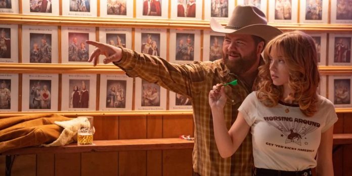 Tost structures “Americana” like a novel, breaking the story into chapters that each follow different residents of a small South Dakota town. Their lives intersect through a stolen Lakota Ghost Shirt, a sacred artifact whose value, both material and symbolic, drives the film’s events. For Sydney Sweeney’s Penny Jo, it is a ticket to Nashville to chase her dream of becoming a country singer despite her pronounced stutter. For Halsey’s Mandy Starr, it is a means to finally escape the religious trauma that has haunted her and her younger brother Cal (Gavin Maddox Bergman). The Ghost Shirt passes from one character to another like the Winchester rifle in Anthony Mann’s classic “Winchester ’73,” functioning both as a McGuffin that propels ambition and as a mirror for the modern West itself.