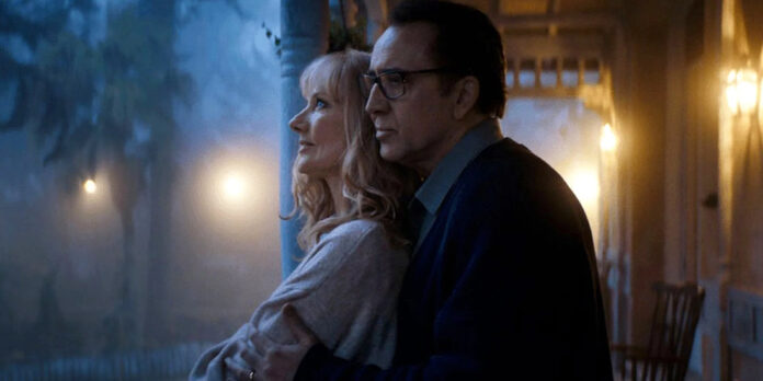 The alpaca farm becomes surrounded by what can only be described as something like “Annihilation”’s “the Shimmer.” It’s a multicolor, semitransparent barrier that not only prevents the family from leaving the farm, but affects time and space, and mutates the animals and plant life within. Along with the infection of everything outside, everything inside the home becomes affected, too. An alien force manipulates the wireless signals from their cellphones, the light from any screen, and affects the family both mentally, and in an even more frightening capacity, physically. The body horror on display is some of the best of the year; however, the lighting and framing of certain scenes prevent the viewer from being able to fully appreciate the horrific transformations and be completely aware of what’s happening in those moments. This isn’t to say that Steve Annis’s cinematography isn’t good – there are some stellar underwater worm’s-eye view shots. As far as the cast goes, they all perform quite well, but it’s Cage who steals the show as a father in denial. He yells about his alpacas and puts on different voices like he’s doing impressions on a comedy tour. While he’s funny at points, his character’s denial creates an explosively dangerous dynamic in the home that forms in the aftermath of these mysterious events. He becomes unhinged, violent, and unpredictable, resembling that of “The Shining”’s Jack Torrance.