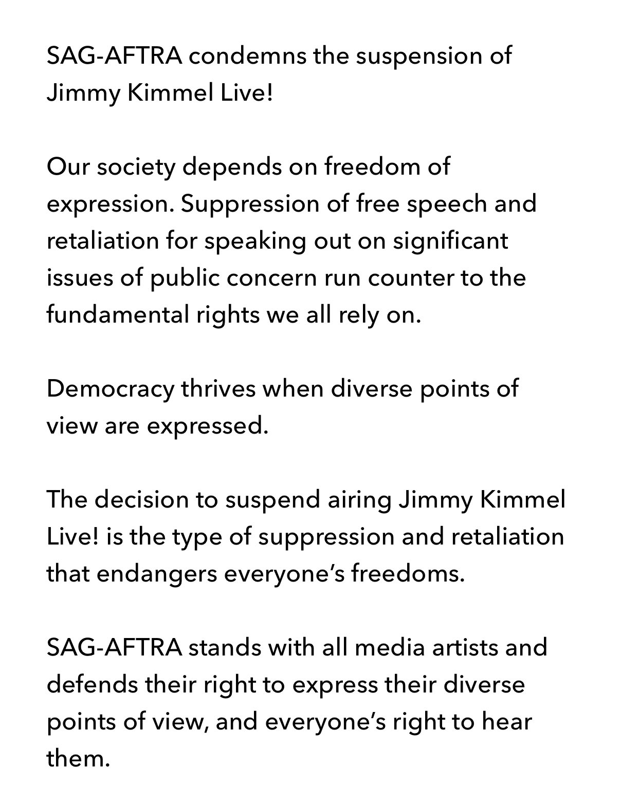 What can be done about any of this? In a time when it feels though as if all hope is fading, there are many peaceful ways to respond to this distressing news. You can begin by speaking out in support of free expression through public channels such as letters to an editor of a publication, writing a blog post, contributing toward a podcast, or posting on social media. Amplifying conversation around the issue helps ensure it does not quietly fade from attention. You may also choose to engage directly with ABC, Nexstar, and Sinclair by writing or calling to share your perspective respectfully, since media companies often track audience feedback and sometimes adjust decisions when faced with collective pressure. You can organize or sign petitions, creating advocacy campaigns that call for the return of Jimmy Kimmel. Supporting other late-night and comedic voices that continue to deliver social critique under the right of the First Amendment is another meaningful step. Beyond this, it is also essential to stay civically engaged by voting, attending peaceful rallies, or backing organizations dedicated to defending our democracy. And finally, encouraging civil dialogue rather than spreading division can make a real difference, as respectful discussions with those who disagree create more space for understanding and reduce the risk of escalating hostility, which is something we need now more than ever.